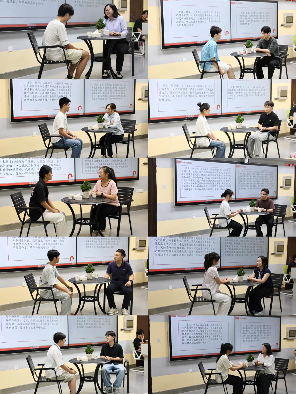 本次大赛分为初赛和决赛两个阶段,涵盖业务知识测试、案例分析和谈心谈话三个环节。5月20日下午,业务知识测试环节在B505教室顺利开展,共有23名专职辅导员参与。测试采取闭卷形式,全面检验参赛选手的专业知识熟练程度及信息理解、分析和解决问题的能力。5月30日下午,案例分析环节通过现场抽取学生心理危机干预、网络舆情应对等典型场景,限时四分钟分析并提出解决方案,重点考察问题研判、理论应用及应急处置能力。最终,10名辅导员脱颖而出,进入决赛的谈心谈话环节。