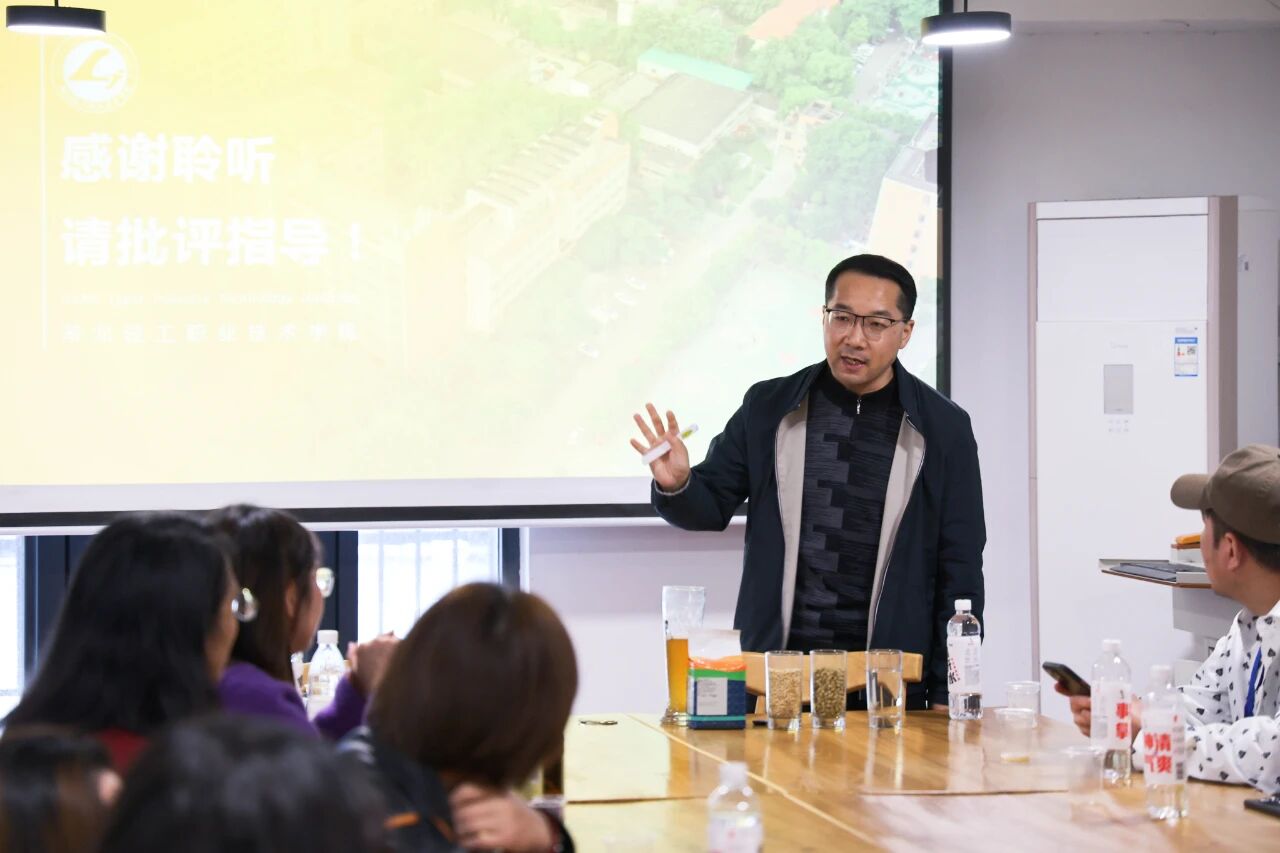 培训期间,参训教师团队实地探访国家级生产实训基地——啤酒实训中心,详细了解学院在实践教学中的先进设施与教学模式。在经验分享会上,中德啤酒学院院长刘光成围绕酿酒技术国家级品牌专业的建设历程、课程体系构建、“双师型”教师队伍培育、国际化合作等核心议题,开展深度研讨交流,为参训学员提供了可复制、可推广的职业教育实践样本。随后学院郭卢云老师不仅系统讲解小麦啤酒的酿造工艺与历史渊源,更带领来访教师开展专业品鉴活动,从外观、风味、口感等多维度感受师生合酿中心小麦啤酒的独特魅力。压轴的鸡尾酒调制品鉴活动进一步点燃现场氛围,将交流推向高潮。来自内蒙古的参训教师表示,湖北轻工职业技术学院将“工匠精神”深度融入实践教学、把产业真实需求转化为教学核心内容的创新做法,为职业院校技能人才培养提供了全新思路。