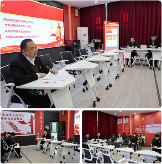 会议指出,党的二十届四中全会是全面建设社会主义现代化国家新征程上的一次十分重要的会议,是“十五五”时期承前启后推进基本实现社会主义现代化的关键会议,其审议通过的《中共中央关于制定国民经济和社会发展第十五个五年规划的建议》,为未来五年国家发展绘制了宏伟蓝图,也为教育强国建设提供了根本遵循,是推进中国式现代化的科学行动纲领。全校上下要深刻领悟“两个确立”的决定性意义,增强“四个意识”、坚定“四个自信”、做到“两个维护”,切实把全会精神转化为办学治校的政治自觉和行动自觉。学习好、贯彻好全会精神,从政治维度看是筑牢办学治校政治根基的必然要求,从发展维度看是赋能职业教育对接湖北先进制造业、现代轻工业发展需求的迫切需要,从使命维度看是落实立德树人根本任务的关键举措。