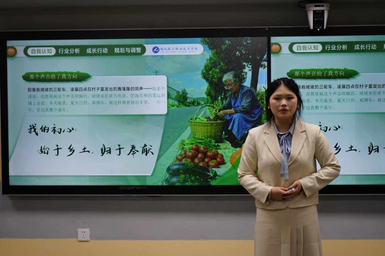 比赛分为选手主题陈述、评委提问两大环节。赛事考核将从职业目标、行动成果、目标契合度、实习意向四个方面进行评比。比赛中,十七位选手依次上台汇报。选手们穿着得体、仪态大方、吐字清晰、语言流畅,结合PPT板块有逻辑地阐述自己的大学计划和职业规划。选手们各具特色,有的分享着自己的实践经历,有的添加视频和音乐活跃着现场的氛围,台下观众们掌声连连。