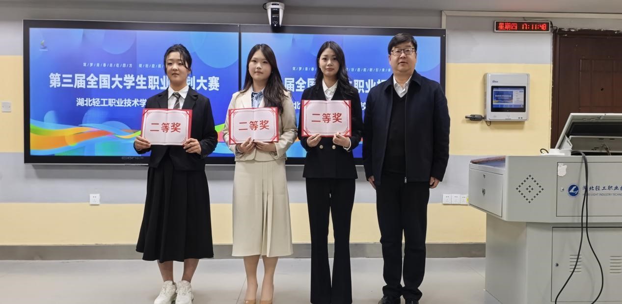 (招生就业指导处刘勋讯)11月27日,第三届全国大学生职业规划大赛湖北轻工职业技术学院校赛决赛在学校B505多媒体教室举行。学校分管就业工作的校领导祁旭东、湖北大学网络空间安全学院党委书记肖志华、武汉光电工业技术研究院副院长马宏飞、武汉顶津食品有限公司人力资源处处长黄湘薇、湖北轻工职业技术学院招生就业指导处处长刘欢等相关人员和师生代表参加了本次活动。