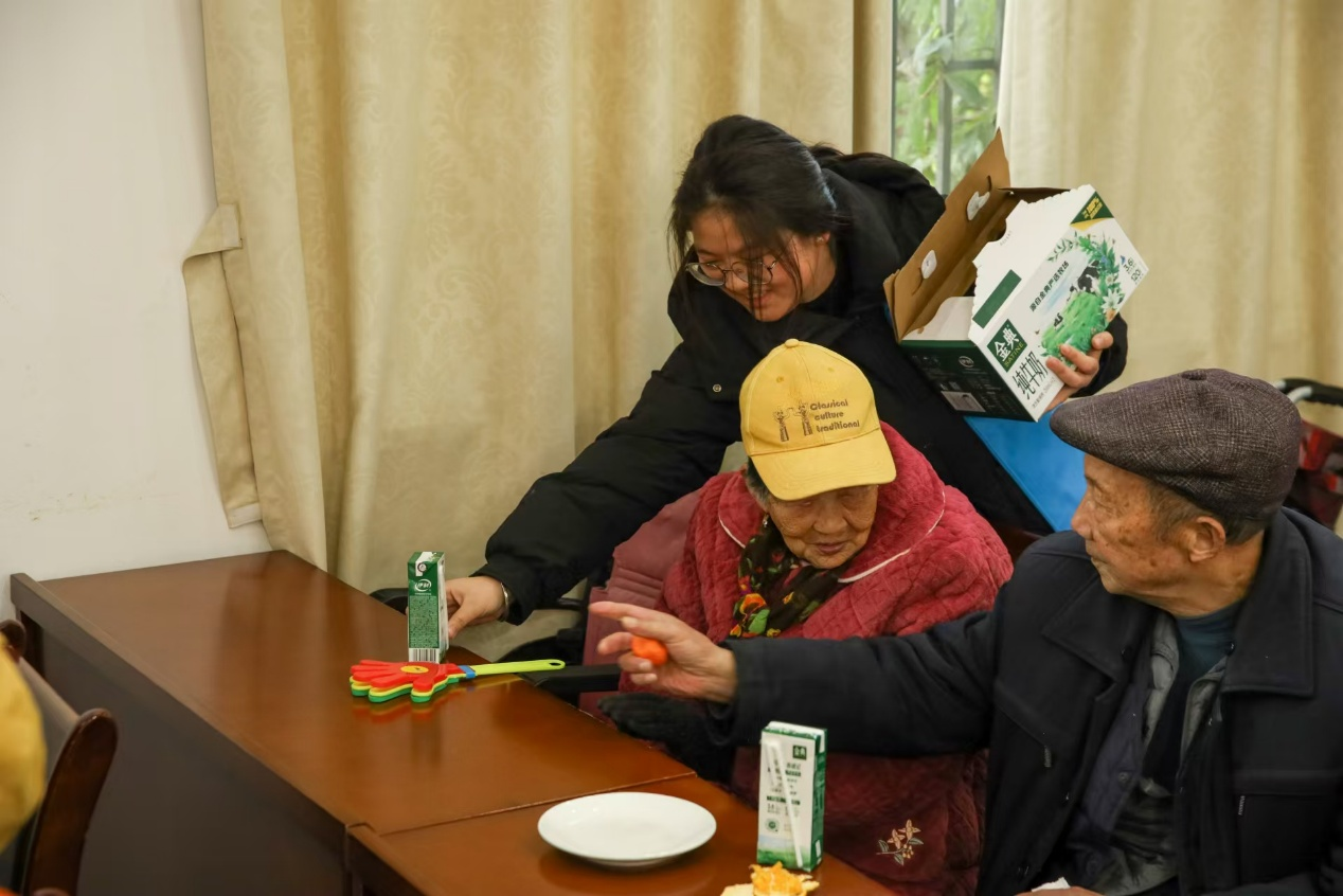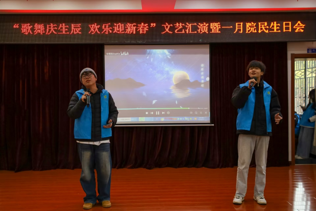 上午9时,我校四叶草志愿者服务队抵达江夏福利院,迅速分工布置现场,全力筹备生日会。电子屏亮起“歌舞庆生辰 欢乐迎新春”字样,生日会正式开始。生辰祝福环节为高光时刻,工作人员推来蛋糕,生日歌响起,志愿者与老人拍手和唱,氛围温馨。志愿者为当月寿星戴皇冠、伴其许愿,随后共同切分蛋糕并送至每位老人手中,让老人感受关怀与温暖。