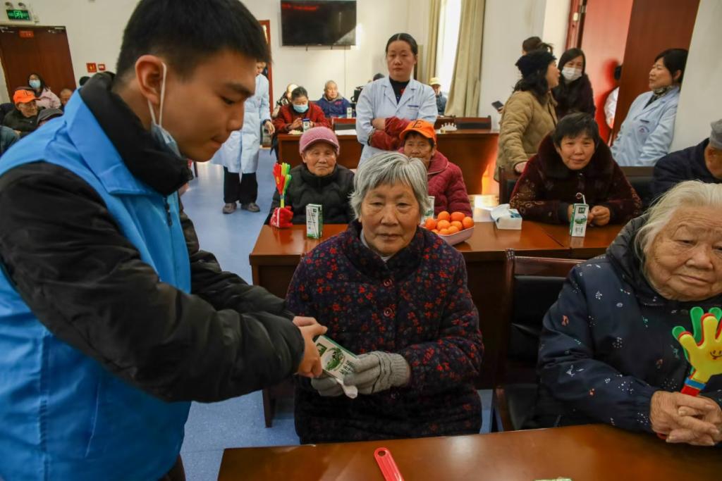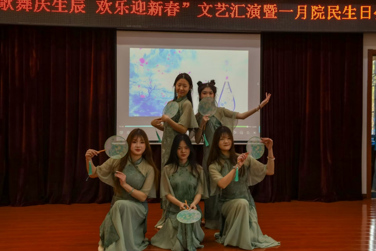紧接着的文艺汇演,青年学子化身“文艺使者”献上视听盛宴。经典老歌合唱率先登场,熟悉的旋律勾起老人们的回忆,不少人跟着轻哼、打节拍。随后的团扇舞表演更令人眼前一亮,身着古典服饰的女生们手执团扇,莲步轻移、身姿翩跹,青绿裙摆摇曳生姿,将传统舞蹈的婉约雅致演绎得淋漓尽致。老人们凝神注目,掌声此起彼伏,满是赞叹。此外,诙谐的小品、戏曲以及灵动的乐器独奏轮番登场,欢笑声、喝彩声在大厅久久回荡。