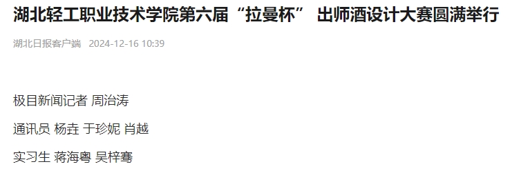湖北轻工职业技术学院党委副书记、校长夏光蔚表示:“赛事的举办为学生们搭建了充分发挥创新能力、展示酿酒技能的舞台。学校与拉曼公司携手共育精酿啤酒行业创新性人才,共同推进技术研发和成果转化,推动了教育链、人才链与产业链、创新链有效衔接,实现了产业与教育的“双向奔赴”。