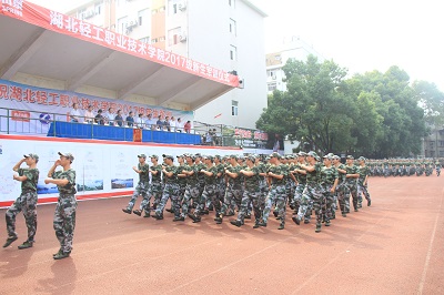 (党委宣传部 林亚正讯)云天收夏色,木叶动秋声。9月25日上午,湖北轻工职业技术学院2017级新生军训会操表演暨开学典礼在校运动场隆重举行,校领导方正平、付三乔、陈向斌、刘少清、黄宪富及承训单位领导武汉警官职业学院陈冬主任等出席,承训单位、学工部领导、学校六个学院院长、副书记、辅导员、新生班主任及全体新生参加。学校党委学工部部长艾发安同志主持此次活动。