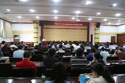 (监察审计处 梅昱讯)根据《湖北轻工职业技术学院2016年党风廉政建设宣传教育月活动方案》的安排,5月12日下午,我院2016年党风廉政建设工作会议在学术报告厅召开。党委副书记徐坤出席会议并作了讲话,全院副处级以上领导干部及全体党员共130多人参加会议。
