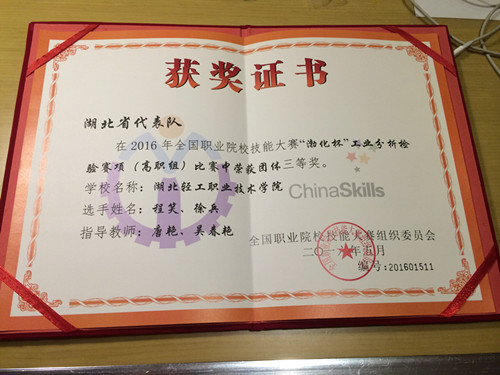 本次工业分检验赛项获得全国三等奖,是我院不断深化教育教学改革,优化专业结构,创新教学模式取得的新成果,彰显了我院的办学实力和优势。