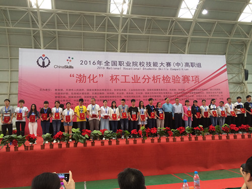 (轻化工程学院 胡漪讯)2016年5月9日,由教育部、天津市人民政府等31家单位共同主办的“全国职业院校技能大赛”高职组“工业分析检验”赛项在天津渤海职业技术学院开赛,来自全国32个省、市、自治区的54支代表队参与角逐。我院派出由唐艳老师和吴春艳老师指导的13级工业分析与检验专业徐兵同学和14环境监测与治理技术专业程笑同学组成的代表队参加竞赛。经过紧张激烈的角逐,我院代表队荣获大赛三等奖。