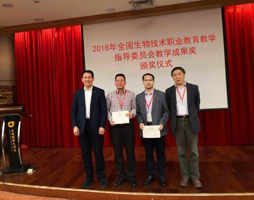 在年会上,我校参评的《引进境外优质资源、创新合作模式,开展啤酒行业人才精准培养的研究与实践》获得2018年全国生物技术行指委教学成果特等奖,全国生物技术行指委主任朱桢及湖南省教育厅职成处余处长为获得特等奖的院校颁奖。我校中德啤酒学院刘光成副院长代表我校参加了颁奖仪式,并在大会上进行了酿酒技术专业建设经验的交流。我校刘建峰老师在大会上进行了2016年全国生物技术行指委教育教学改革项目《现代学徒制下项目化课程体系的构建》结题成果的汇报。
