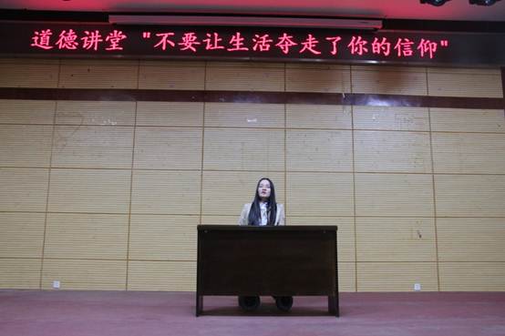 (公共课部 黎玲讯)11月29日下午两点,全国道德模范董明老师受邀赴我校作了题为《不要让生活夺走了你的信仰》的演讲。付三乔副院长、党委宣传部、思政课部的教师及300余名学生代表在报告厅现场听取了此次演讲,其余师生通过直播观看了本次演讲。