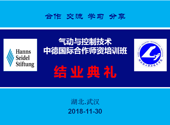 【机电学院 李婷讯】为了不断学习推广德国职业教育教学理念和方法,促进我国职业教育的科学发展,大力提升教师课程教学设计和教学实践的能力。11月25日至11月30日,我校机电工程学院成功举办了第二期湖北省职业院校“气动与控制技术”师训班,培训班由德国汉斯赛德尔基金会主办,湖北轻工职业技术学院承办。来自湖北省职业院校的12名机电专业骨干教师参加了此期培训,完成培训项目后,均获得了由德国赛德尔基金会颁发的结业证书。