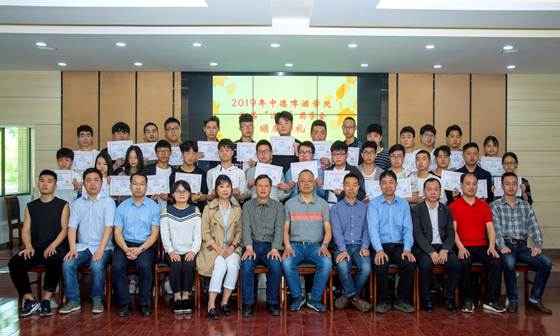 (中德啤酒学院 尹宇讯) 2019年4月18日上午十点,中德啤酒学院首届“达能”奖学金颁奖典礼在六楼会议室隆重举行。达能中国饮料华中区域工厂总监李鹏先生、达能中国饮料武汉工厂人力资源经理高原先生、人力资源主管徐汨女士、湖北轻工职业技术学院副院长陈向斌、中德啤酒学院党总支书记程汉生、院长刘光成、党总支副书记陈敬春、啤酒机电教研室主任周亮及班主任何威、刘勋参加了颁奖典礼。