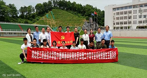 捐赠活动结束后,全体与会老师和学生拍照合影。本次捐赠活动的所有资金由中德啤酒学院全体党员及教职工自发筹集,体现了学院全体教职员工对国家扶贫政策和教育事业的响应与支持。同时,本次活动也对我校进行了积极的宣传,让当地更多的师生认识和了解湖北轻工职业技术学院这所优秀的高职院校。