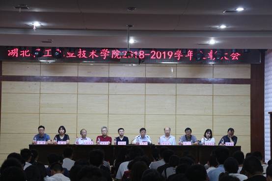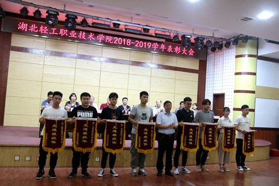 大会在庄严的国歌声中拉开了帷幕,校长助理祁旭东宣读了《湖北轻工职业技术学院2018-2019学年先进集体和个人的表彰决定》。与会领导为先进班级体、红旗团支部、优秀社团、优秀学生干部、优秀学生、优秀共青团干部、优秀共青团员和青年标兵等代表颁奖。随后,先进班级代表田牧丁和优秀学生代表吴光泽先后上台发言。