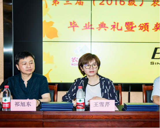 典礼上,农夫山泉总部人资部经理王雪芹女士首先讲话,她勉励毕业生踏实做人、修炼技能、敢于吃苦、勤勉学习,未来能在农夫山泉集团这个更大的舞台发挥自己更大的能量。湖北轻工职业技术学院党委书记方正平书记致辞答谢,他表达了对农夫山泉集团水源地生产的浓厚兴趣,感谢农夫山泉股份有限公司长期以来对我院教育事业的大力支持和充分信任,并叮嘱全体毕业生踏入岗位继续努力,再创佳绩,为学弟学妹们树立好的榜样。湖北轻工职业技术学院院长助理祁旭东老师和中德啤酒学党总支书记程汉生老师分别宣读了农夫山泉学习奖奖学金和实习奖奖学金名单。