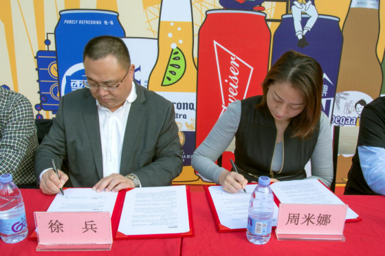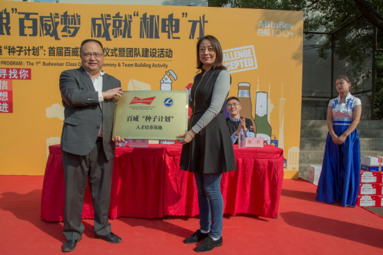 开班仪式之前,首先由徐兵校长和周米娜总监签署了校企双方合作协议,并进行“百威供应链’种子计划’实践基地”互相授牌仪式。