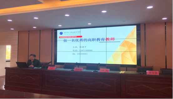 (人事处 梁钰讯)为贯彻落实《中共中央 国务院关于全面深化新时代教师队伍建设改革的意见》及湖北省高校教师队伍建设有关文件要求,结合职业教育改革发展及我院新入职教师及青年教师成长实际,10月24日下午,人事处(党委教师工作部)在学院六楼会议室举行了2019年度青年教师教学科研成长及校本研修专题培训,分管人事、教学工作的副校长陈向斌、教务处长张建平、发展研究中心主任陈飞分别就职业素养领航、教学实践素养提升和科研能力导引三个方面的内容与我校在职的近百名青年教师作了深入指导与交流,培训会由党委教师工作部部长方东霞主持。