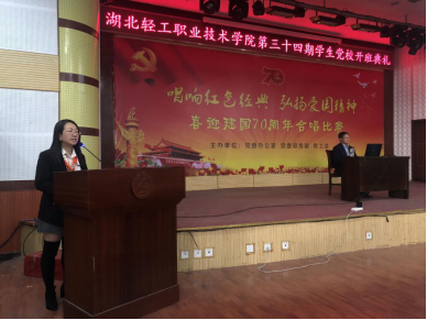 (党委办公室 张经纬讯)11月11日中午,湖北轻工职业技术学院第三十四期学生党校培训班开班典礼在报告厅举行,学院党委书记、党校校长方正平同志出席并给参加典礼的师生上了一堂生动的党课。全体二级学院党总支副书记、党校带班老师、274名党校参训学员参加了开班典礼,典礼由学院党委办公室王晶老师主持。