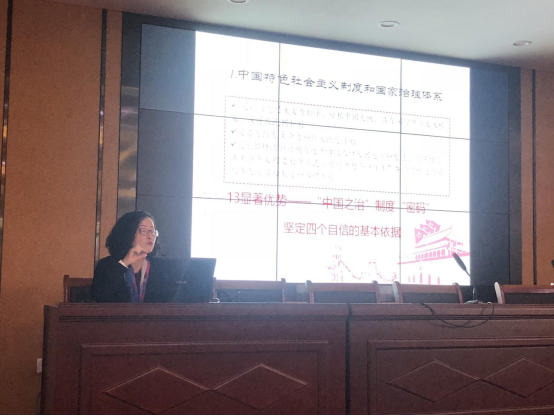 王芳老师把学习贯彻党的十九届四中全会精神与第二批主题教育学习紧密结合,从“是什么”“为什么”“怎样做”三个方面,解读“中国之治”制度密码,通过中西方制度对比,充分彰显中国特色社会主义制度优势,引导党员干部坚定制度自信,以自身实际行动讲好中国故事。