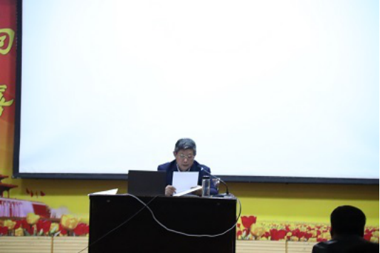 (主题教育领导小组 张经纬讯)11月14日,学院在报告厅召开“不忘初心、牢记使命”主题教育推进会暨十九届四中全会精神学习宣传动员会,党委书记方正平同志出席并做了党的十九届四中全会精神学习宣传动员的首场宣讲。党委副书记、院长徐兵同志主持会议,全体教职工参加了会议。
