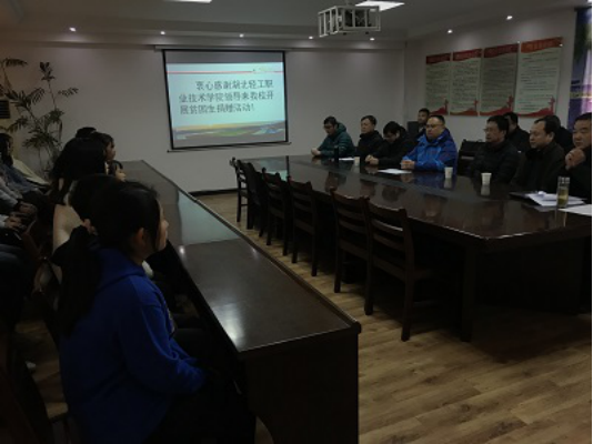 (党委办公室 王晶讯)为了将党的十九届四中全会精神落实到教育扶贫工作,11月26日,我校党委副书记、校长徐兵同志冒着冻雨带领分管教育扶贫、党务和学生管理工作的班子成员和中层干部以及相关专业课教师一行11人,到我校对口教育扶贫单位罗田理工中专开展帮扶活动。