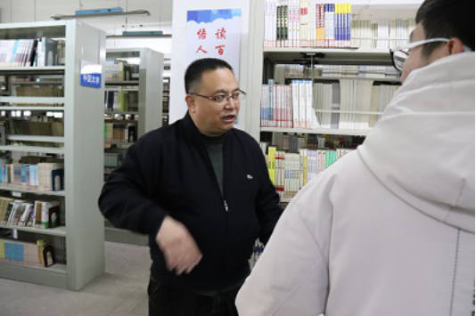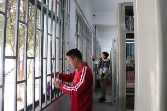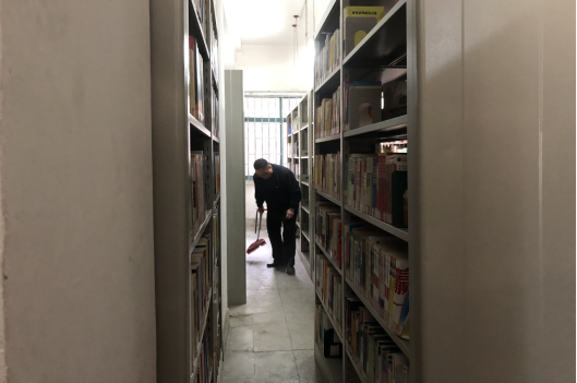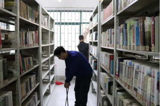 图1 徐兵校长带领同学们在校图书馆大扫除