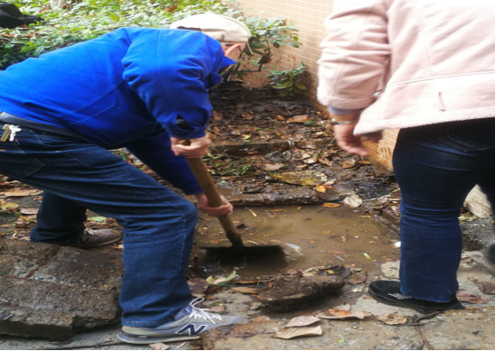 图5 杨文平老师带领同学们清理实训楼污水沟