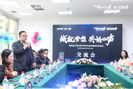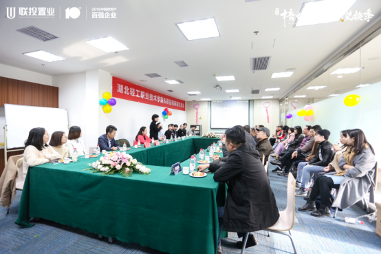 (装饰艺术学院 邱海燕 邓楚君讯)受联投集团诚邀,徐兵校长率相关职能部门和装饰艺术学院全体教师于2019年12月10下午前往联投看望实习的学生并参加“湖北轻工职业技术学院&联投梧桐湖交流会”。