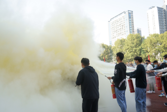 学生使用灭火器灭火