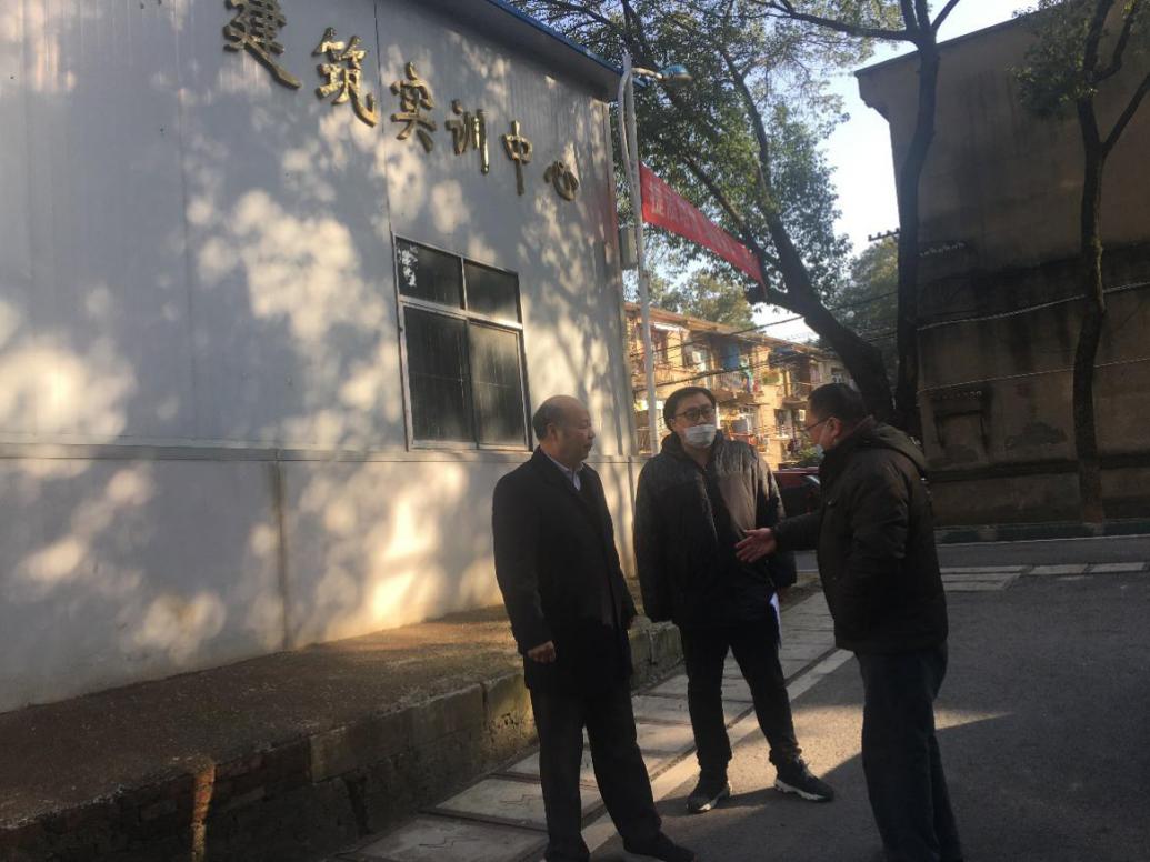 图为徐兵同志(右一)在建筑工程学院实训中心走访