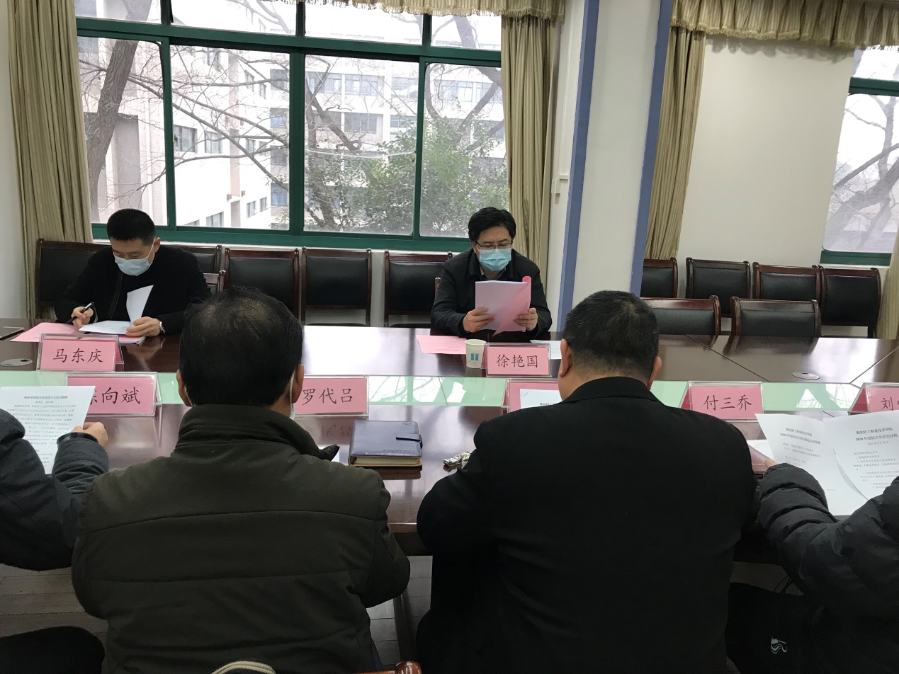(党委办公室 王晶讯)2月10日上午,学院召开领导班子成员2020年度民主生活会,省教育厅副厅长、党组成员徐艳国同志、省教育厅直属机关党委四级调研员马东庆同志到会指导,学院党委书记、院长徐兵同志主持会议,全体班子成员参加了会议。