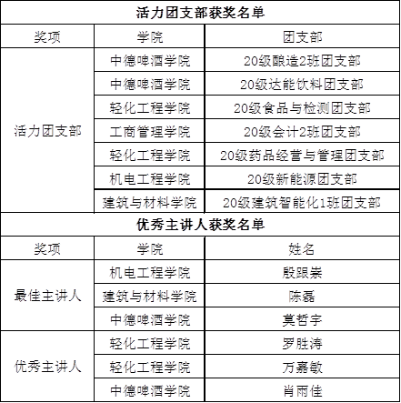 经选拔,共有 9名主讲人和10个团支部晋级决赛。决赛分为“优秀主讲人”和“活力团支部”两个部分。