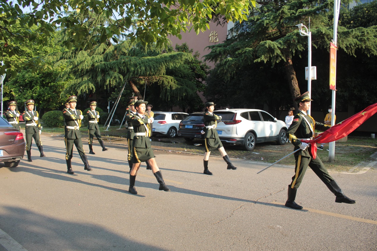 活动进行第一项:“升国旗,奏唱国歌”湖北轻工职业技术学院仪仗队踏着坚定的步伐护送国旗入场
