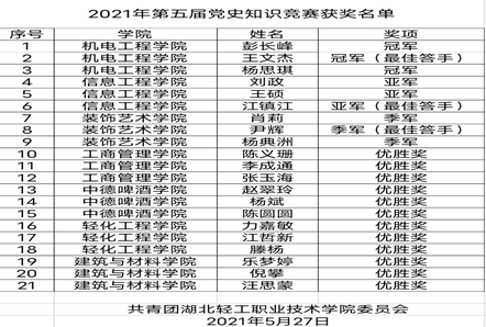 本次比赛由校团委组织部主办,分为必答题、抢答题、观众题和风险题四个环节,经过激烈角逐,第五届党史知识竞赛获奖名单已揭晓,在此对他们表示热烈的祝贺!