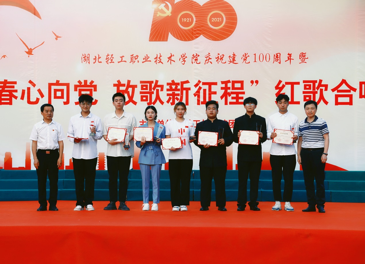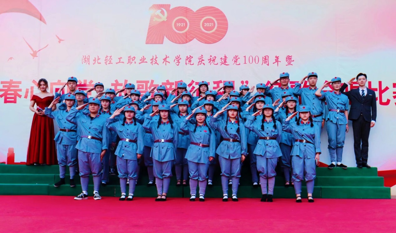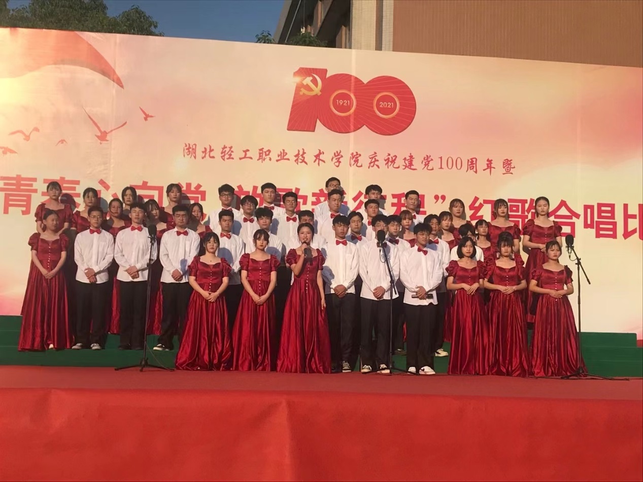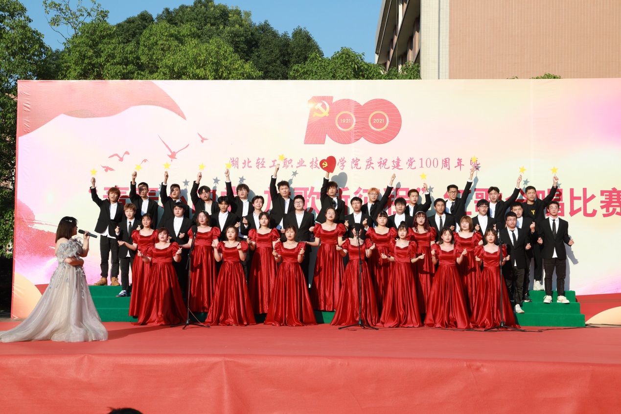 比赛现场,由各系部青年学生代表组成的7支参赛队伍轮番上阵、齐声合唱,精彩演绎了《唱支山歌给党听》、《我们走在大路上》等脍炙人口的红色歌曲,在歌声里共同回顾党的百年历程和峥嵘岁月,共同庆祝建党100周年。期间,轻院之声广播台带来的诗歌朗诵《党啊,我亲爱的母亲》和校文艺部带来的舞蹈《第一天》掀起了整场活动的高潮。整场比赛气势恢宏,高潮迭起,赢得了在场师生的阵阵掌声。