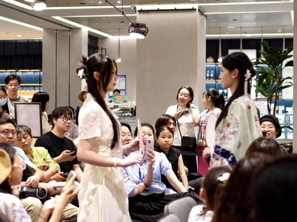 伴随活动进行的,还有一场汉服簪花走秀和国风舞蹈展示,建筑与设计学院的学生们身着国风服饰,头戴花簪,缓步行走于书店空间之中,仿佛从画中婉婉走来。这是对商务礼仪课程学习效果的展示,更是学生们对传统文化的深刻理解和创新演绎。通过这样的实践,学生们不仅提升了自身的专业技能,还增强了对传统文化的认同感和自豪感。