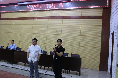 (学工处 张莹莹讯)2016年5月4日下午,我院就业指导中心在学术报告厅举办了优秀毕业生报告会,报告会由学工处处长王邵同志主持,院党委书记方正平同志出席并做了重要讲话。各二级学院党总支书记、副书记、辅导员班主任等近300名师生聆听了报告。