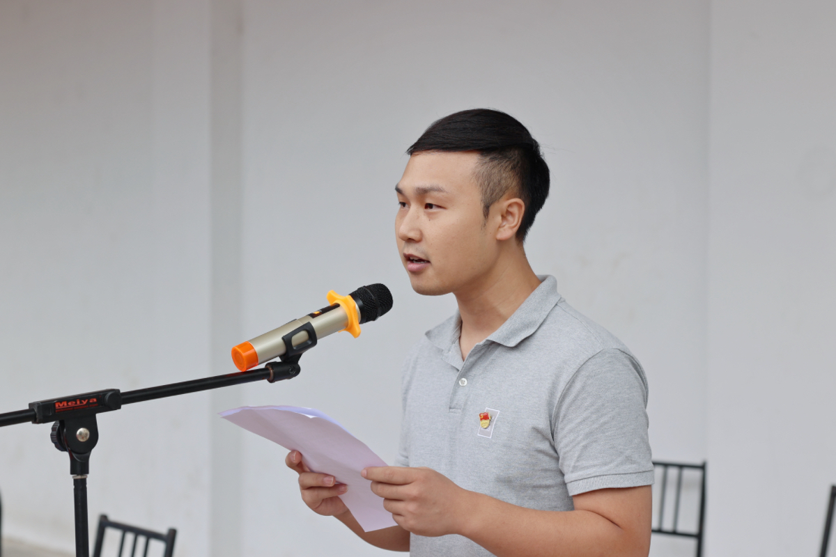 工商管理学院辅导员朱棣文作为青年教师代表发言,他通过学校师生技能竞赛摘取奖项、志愿服务温暖人心的一个个小故事,号召新同学们志存高远、脚踏实地,以实际行动彰显青春担当。