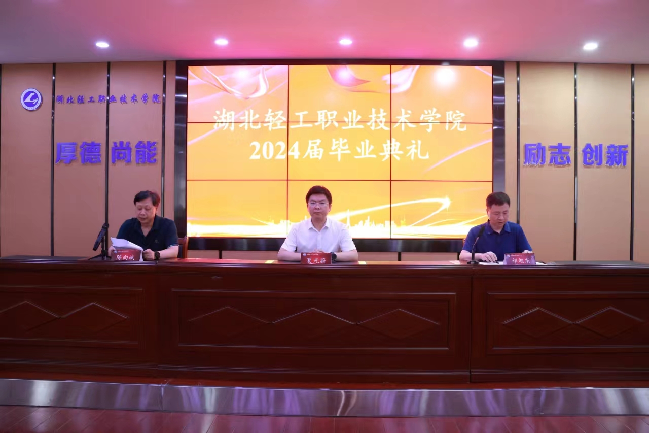 (招生就业处刘勋讯)骊歌唱响,梦想起航,又到一年毕业季。6月19日上午,我校2024届毕业典礼在行政楼六楼报告厅举行。校长夏光蔚,副校长陈向斌,校长助理祁旭东以及教务处、学工处、招就处、各二级学院院长、学工书记、教师代表、2024届毕业生代表等共聚典礼现场。毕业典礼由校长助理祁旭东主持。