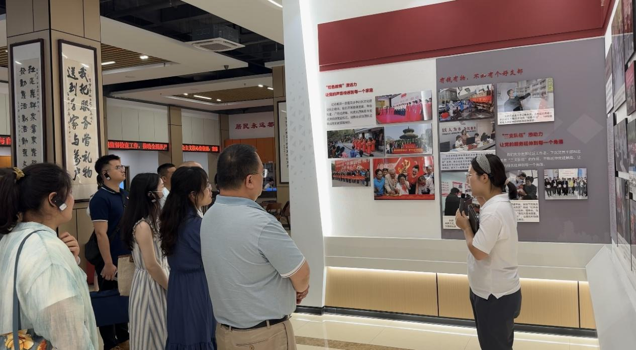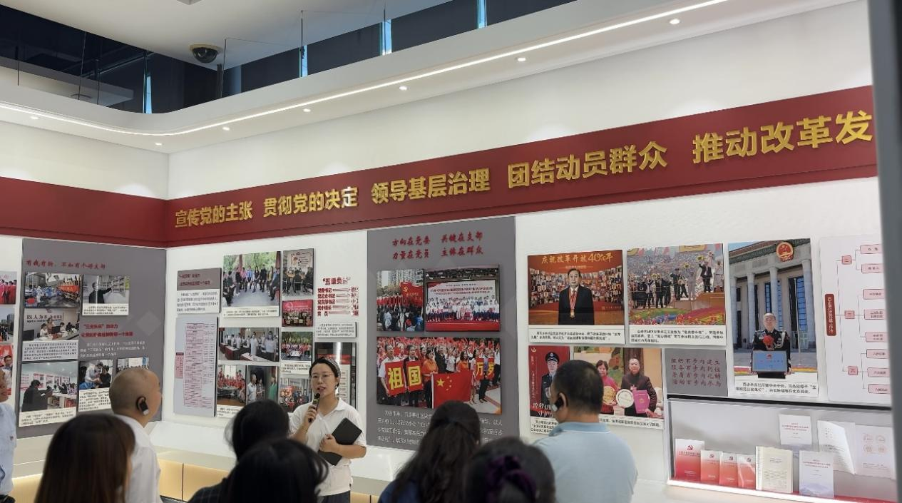在社区党员群众服务中心大厅,讲解人员带领大家参观了社区治理多媒体展厅、志愿服务阵地,介绍了百步亭社区的发展史以及丰富多彩的社区文化,特别是百步亭社区党委的“二三六”党建工作法以及“1+10”传帮带机制、红色物业“三个一百”、下沉党员“红色拍档”等一批新经验、新做法。