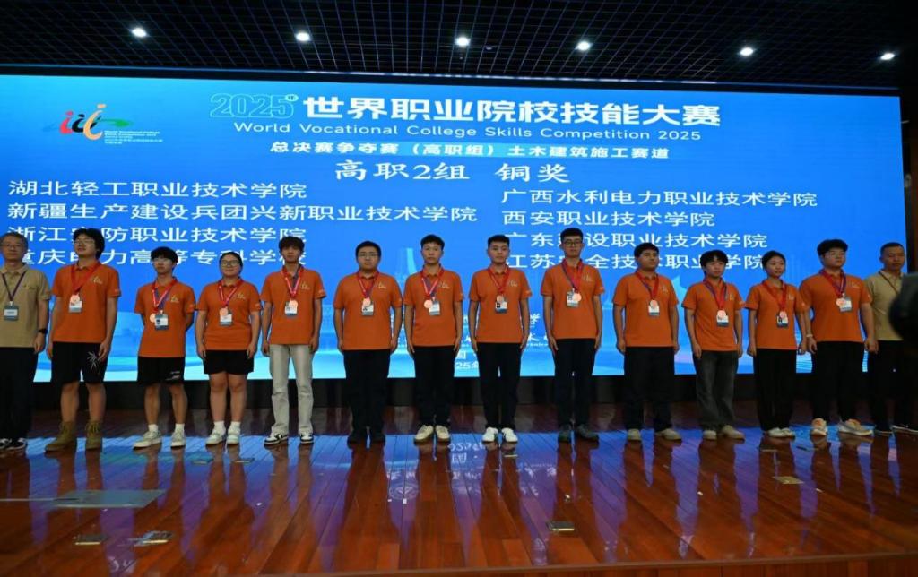 (建筑工程与设计学院 汤艳丽讯)2025年8月26日至31日,世界职业院校技能大赛土木建筑施工赛道(高职组)总决赛争夺赛在安徽举行。我校建筑工程与设计学院代表队建筑智能化专业徐静静、胡钜丰、陈明、易品品同学,在杨洁院长领队和李国芳、汤艳丽、盛文剑老师指导带领下,沉着应战、出色发挥,凭借扎实的专业基础、严谨的设计逻辑与高效的团队协作能力,在比赛中脱颖而出,斩获该赛道铜奖!