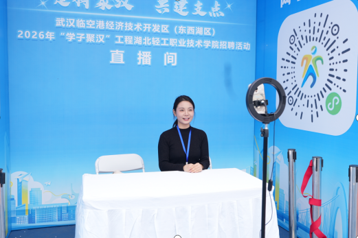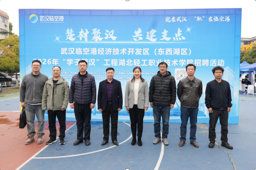 (招生就业指导处 刘勋讯)为深入贯彻落实就业优先战略,扎实推进毕业生高质量充分就业,3月26日,武汉临空港经济技术开发区(东西湖区)2026年“学子聚汉”工程湖北轻工职业技术学院专场招聘会在石牌岭校区篮球场顺利举办。东西湖区人力资源和社会保障局副局长张玲、东西湖区就业促进中心主任彭翔、湖北轻工职业技术学院院长助理祁旭东、招生就业指导处相关负责人等同志出席活动。